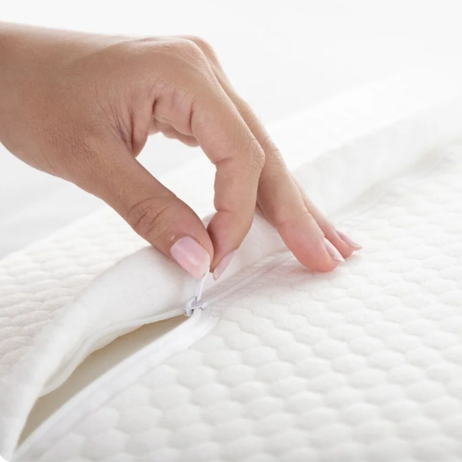 Materiał jest oddychający, wykonany w 100% z pianki memory o powolnym odkształcaniu oraz wyposażony w wysokiej jakości zamek błyskawiczny, który zapewnia łatwe i płynne użytkowanie.